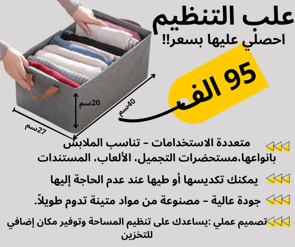 لكل امرأة تعبت من الفوضى والبحث المستمر عن قطع الملابس داخل الخزانة، نقدم لكِ  boite de rangement، الحل الأمثل الذي يجمع بين التصميم العصري والجودة العالية. سواء كنتِ شابة تبحثين عن لمسة عصرية أو سيدة ذات خبرة تهتمي بالتفاصيل، Box صُمم ليلبي احتياجاتكِ ويمنح خزانتكِ المظهر الذي تحلمين به.